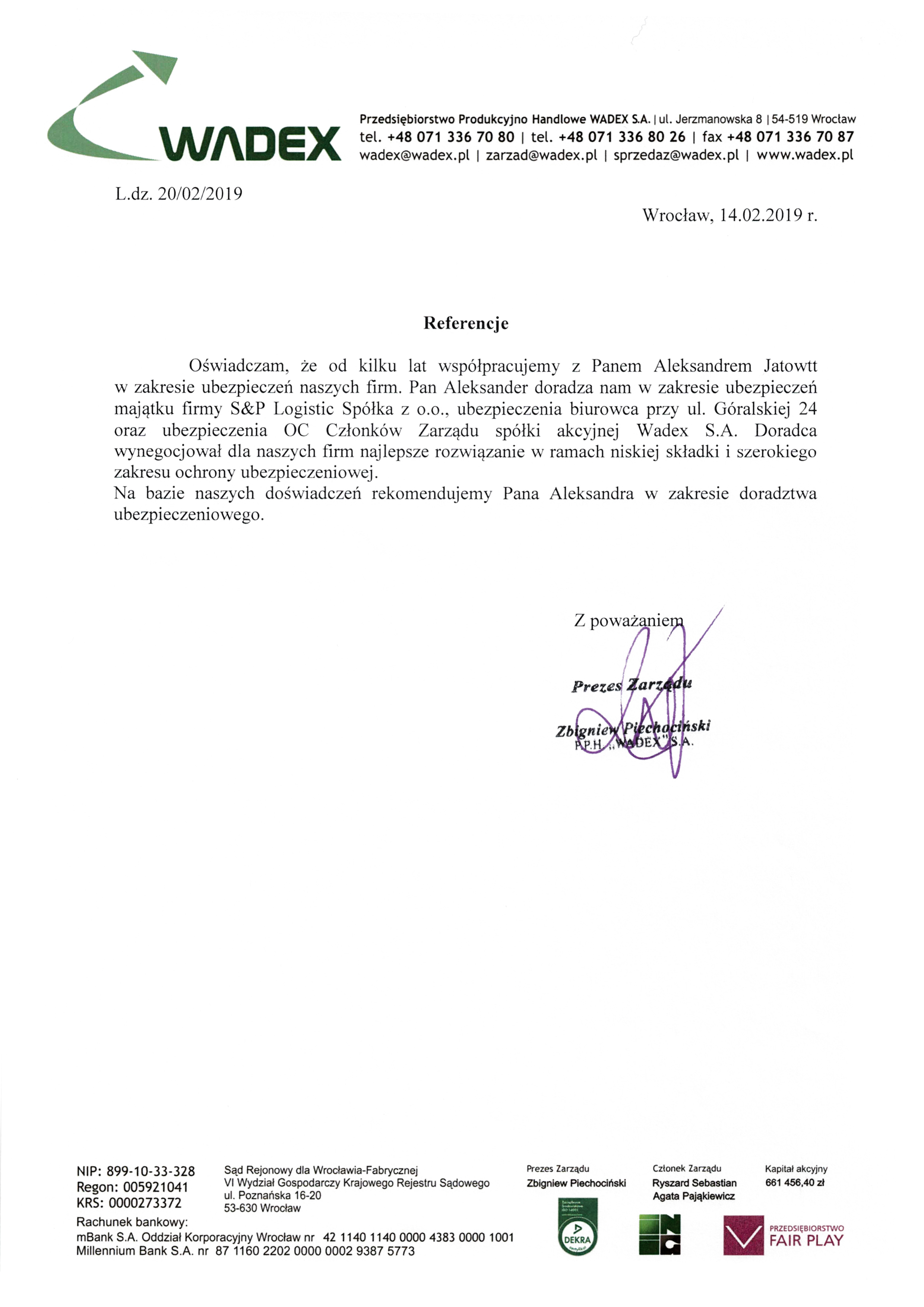 Jesteśmy członkiem Zachodniej Izby Gospodarczej, zrzeszającej kilkaset przedsiębiorstw na dolnym śląsku